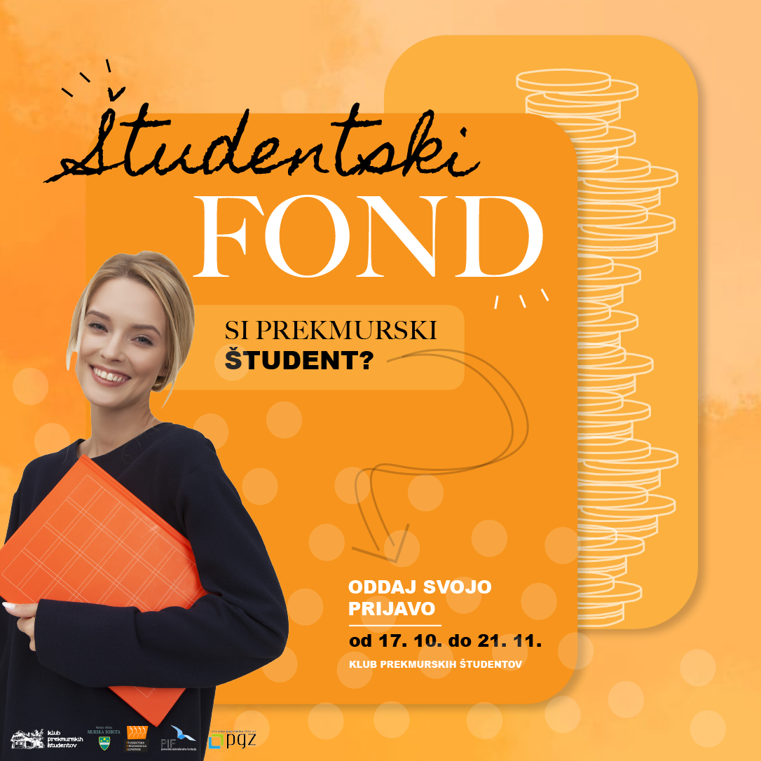 Klub prekmurskih študentov objavlja že 13. razpis za pridobitev enkratne štipendije iz sklada Študentski fond za študente v socialni stiski. Enkratne štipendije podeljuje Klub prekmurskih študentov (KPŠ), pri projektu pa sodelujeta tudi Pomurska izobraževalna fundacija (PIF) ter Pomurska gospodarska zbornica (PGZ).