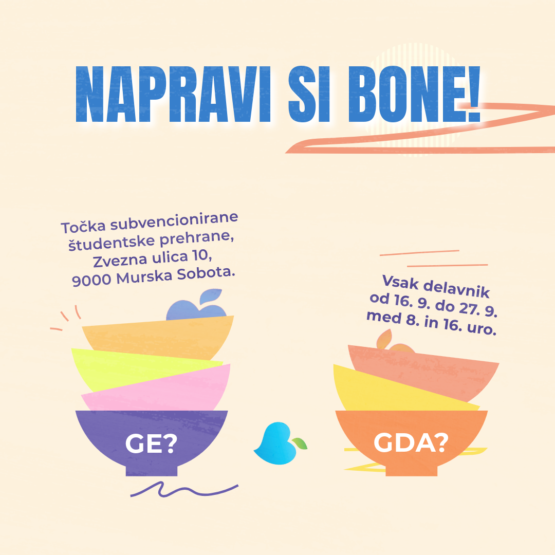 Pred prihodom je treba urediti spletno prijavo na https://www.studentska-prehrana.si/sl/Account/Register, ne pozabi pa na mobilni telefon, osebni dokument in potrdilo o vpisu za študijsko leto 2024/25.